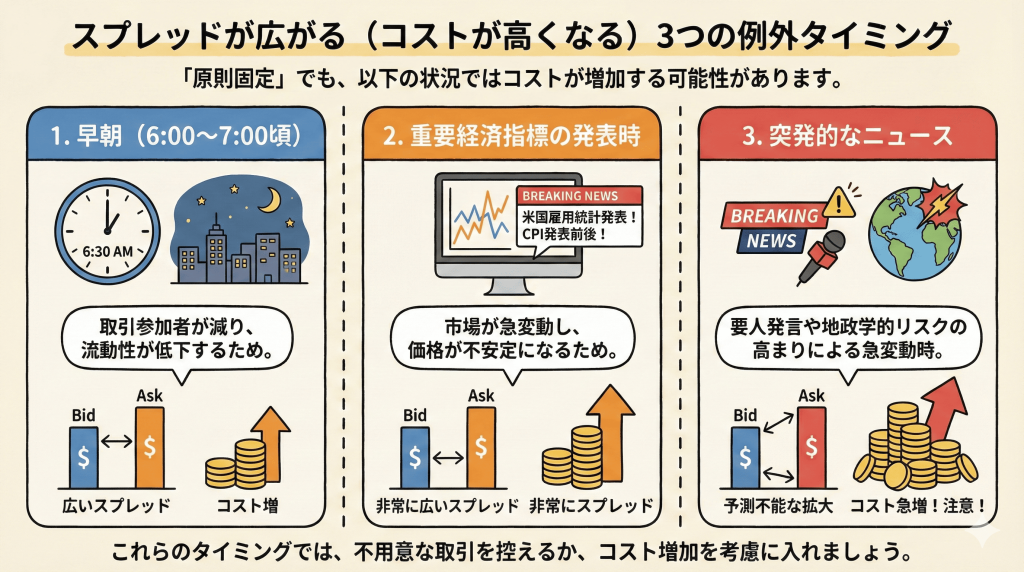 【理由2】「原則固定」を過信してはいけない!早朝・指標発表時にスプレッドが急拡大するリスク