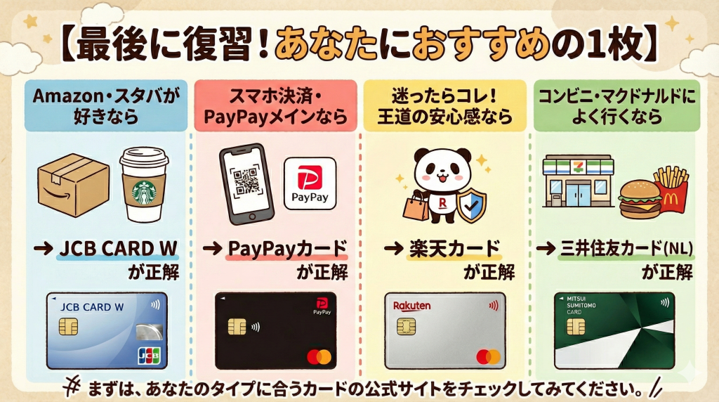 【結論】生活費の支払いにおすすめのクレジットカード